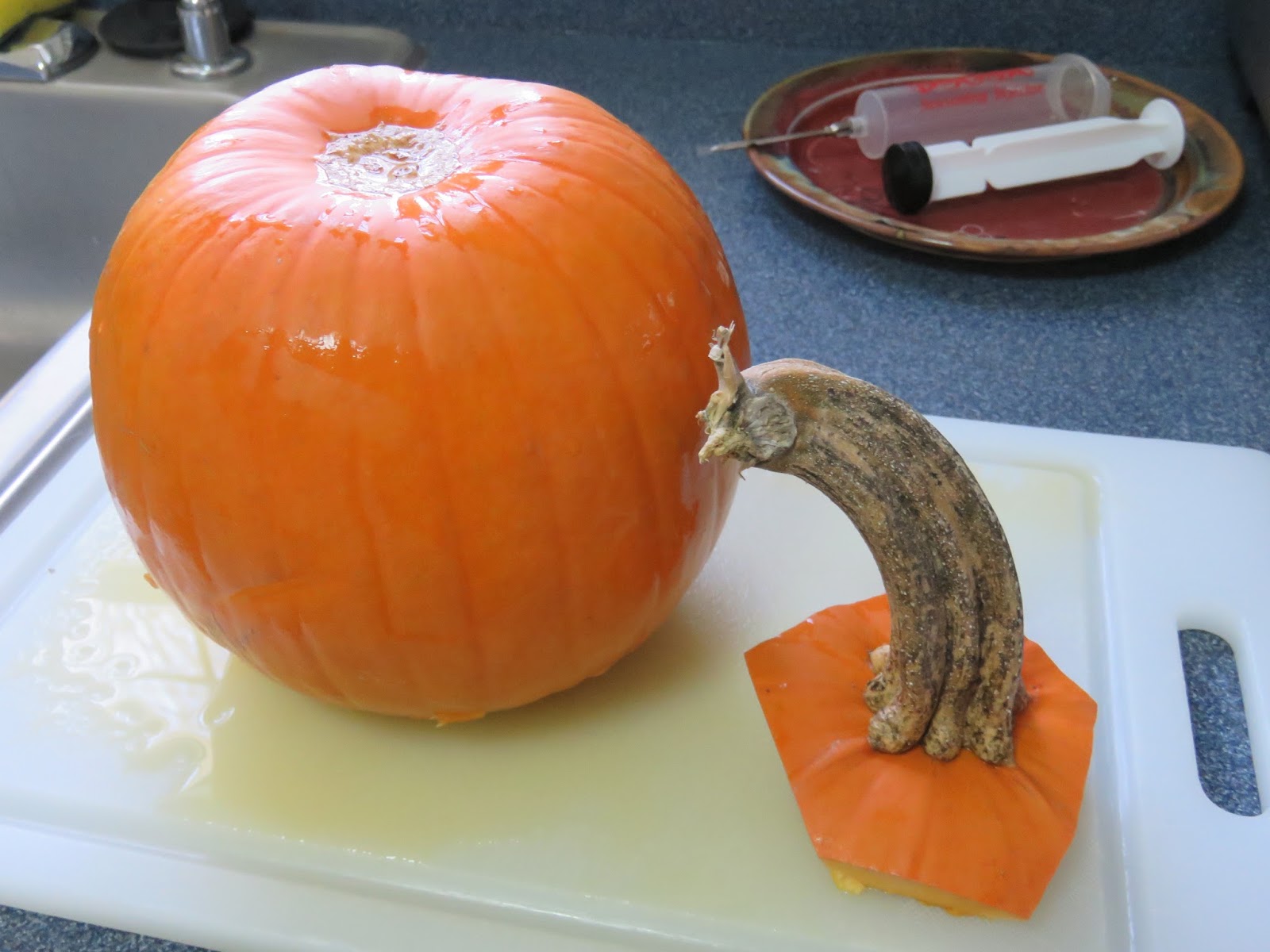 Other preparations about to be done: make and bake cornbread and stuffing for the pumpkin, prepare turkey and Weber grill to make smoked turkey. Cranberry sauce: made yesterday. I love Thanksgiving. Have a great one, everybody.